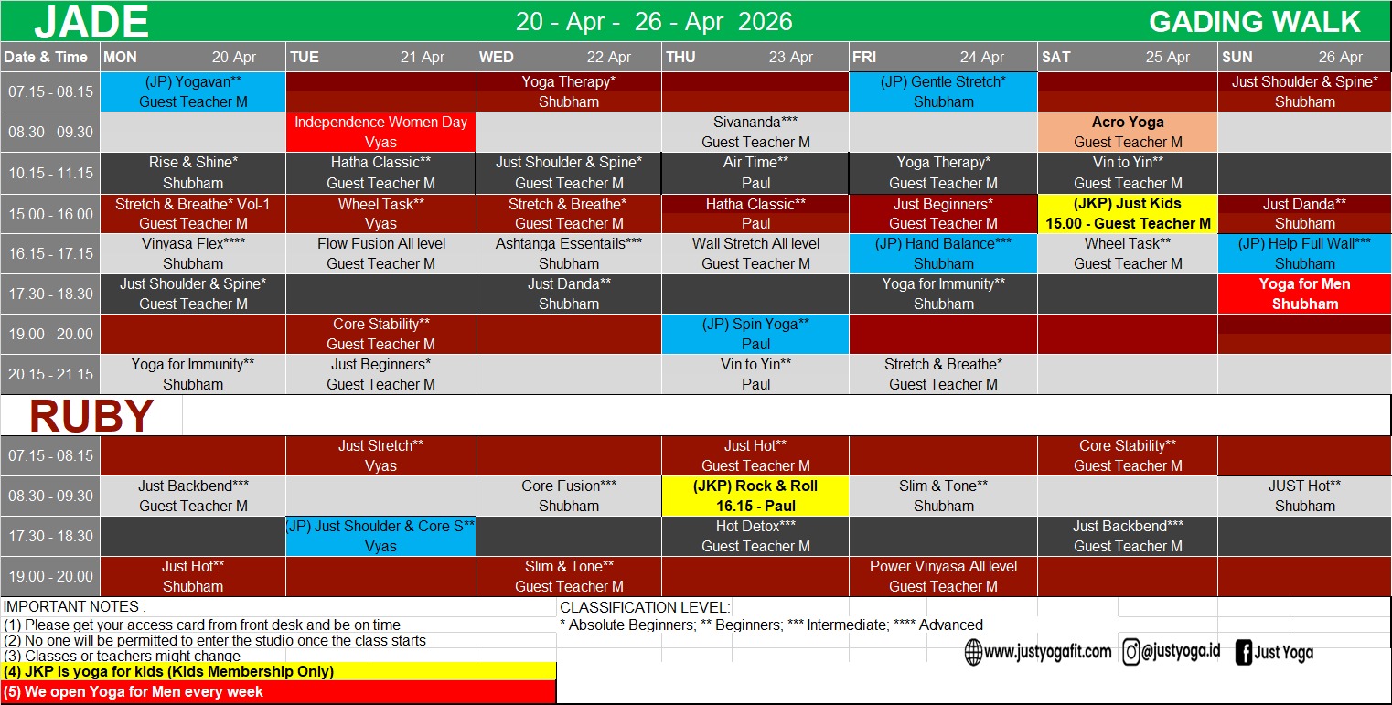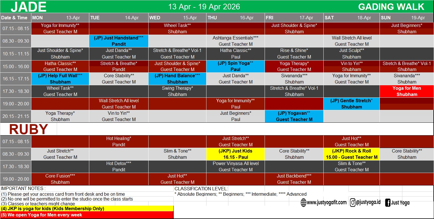 Kindly find our class schedule below