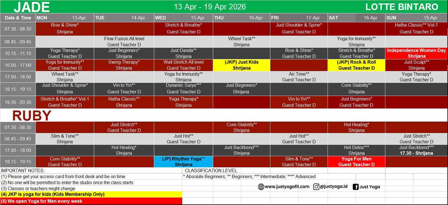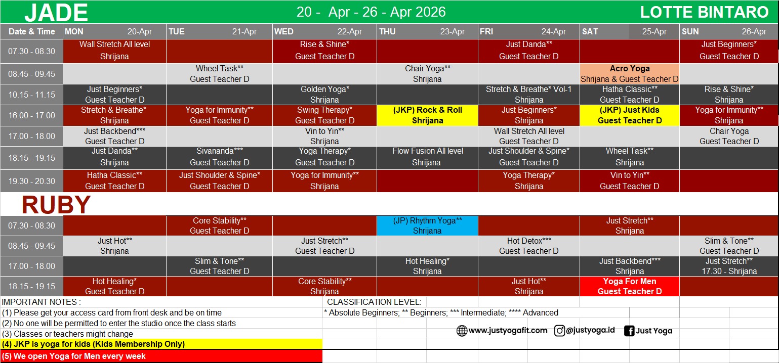 Kindly find our class schedule below